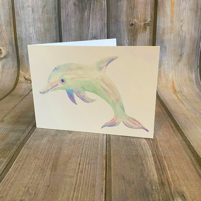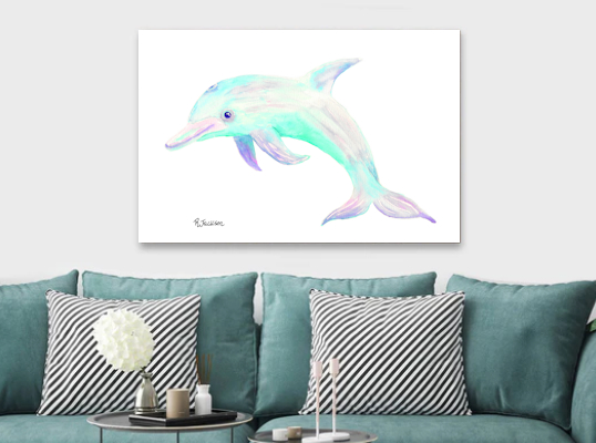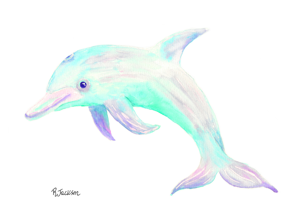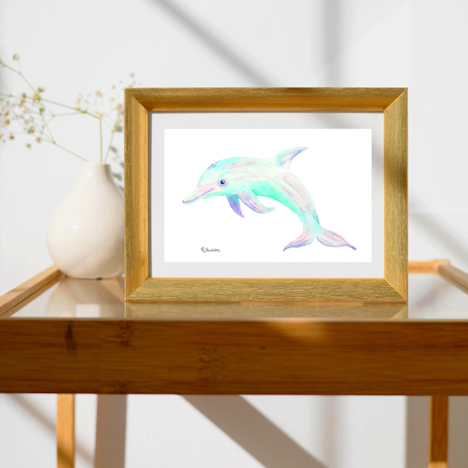 Originally painted on A4 high quality watercolour paper in landscape format, this dolphin was requested by my daughter!