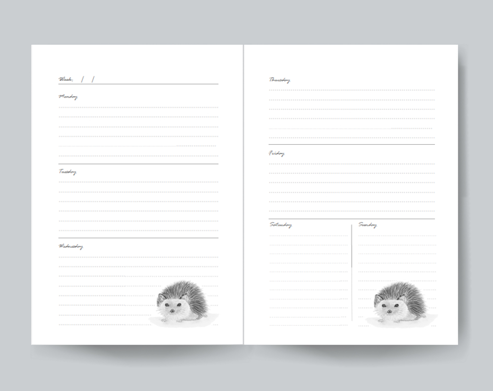 Each double page of the weekly planner is sectioned off by day to enable you to plan your week.