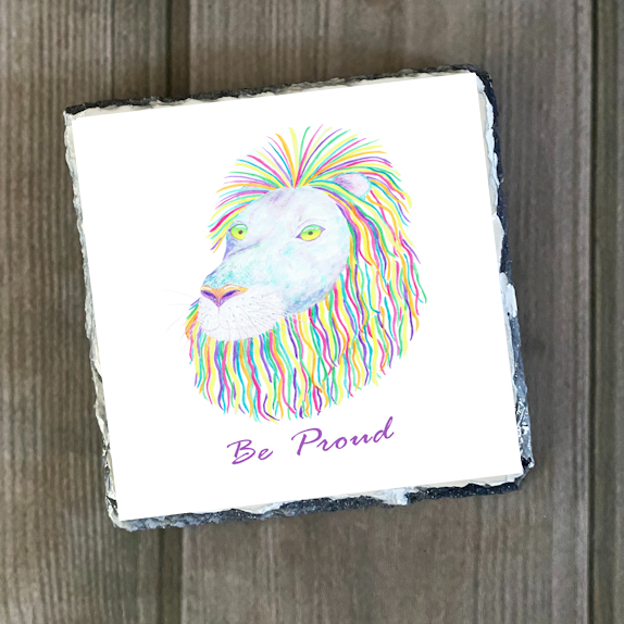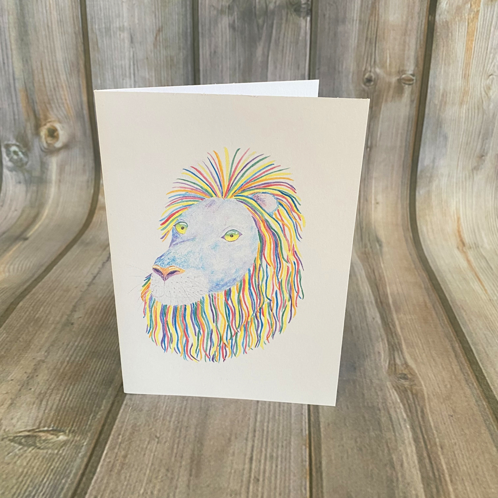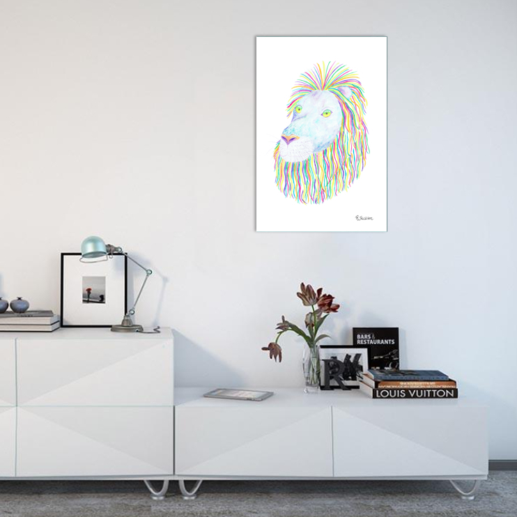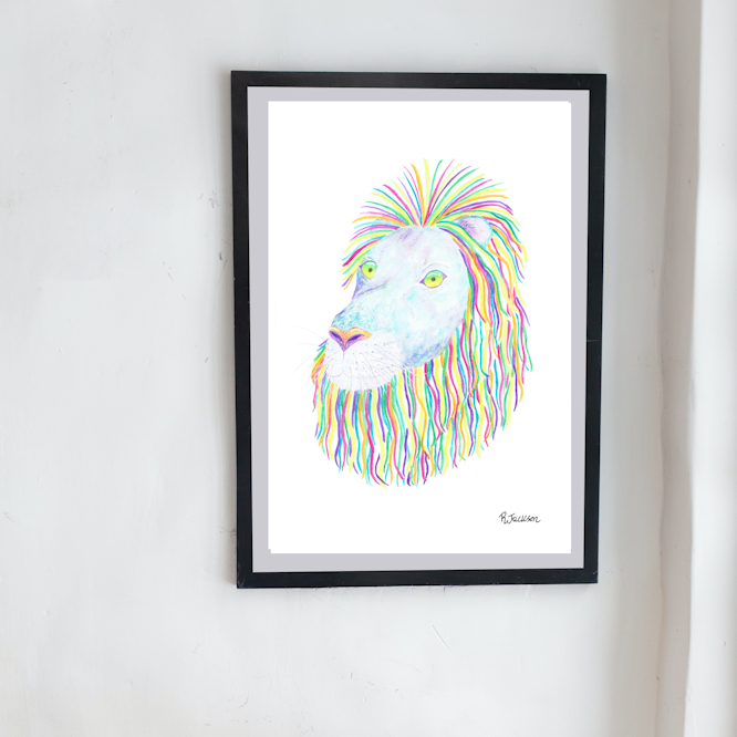 Originally painted on A3 high quality watercolour paper, this lion is one of a few I’ve done but this is my favourite as it’s the most colourful with its rainbow mane.