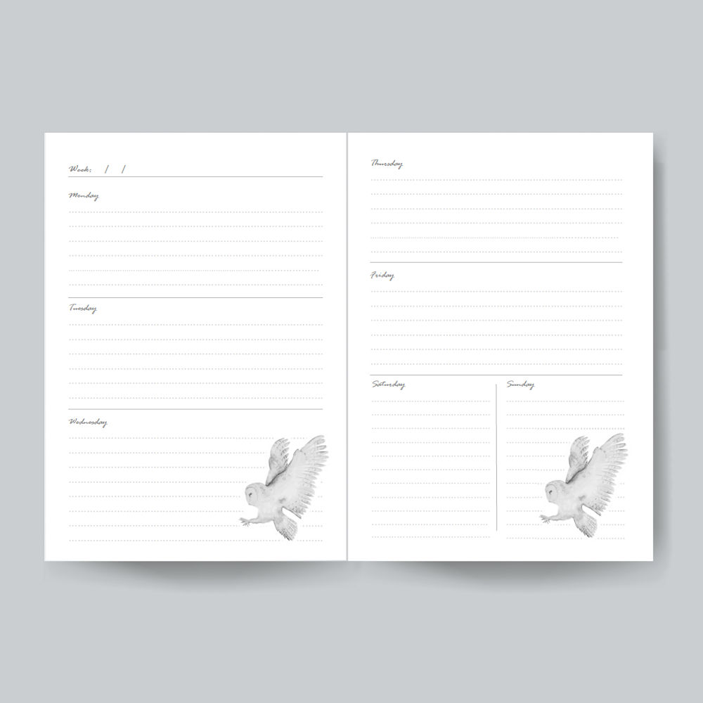Each double page of the weekly planner is sectioned off by day to enable you to plan your week.