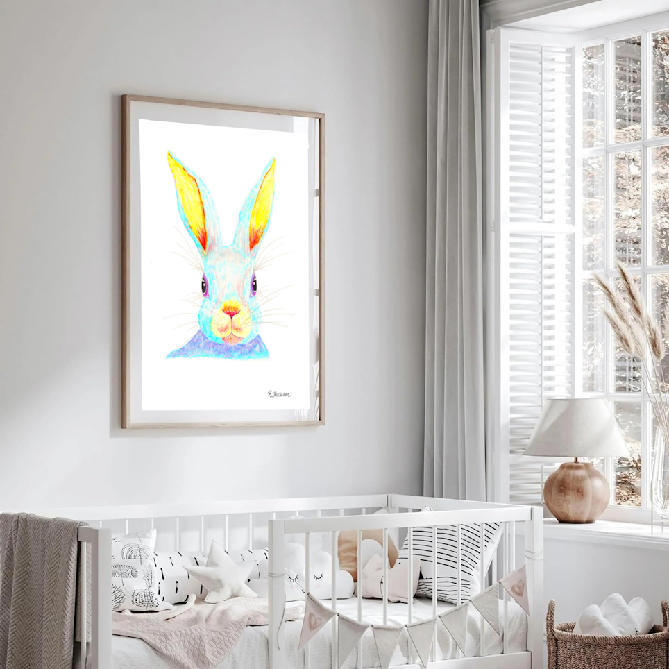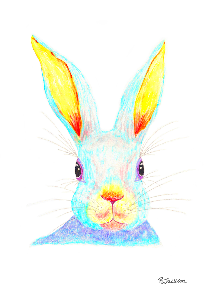 I originally painted this rabbit in realistic colours and then decided to redraw it to make it more colourful.