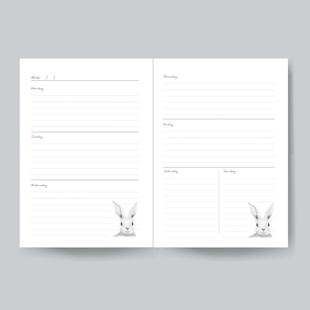 Each double page of the weekly planner is sectioned off by day to enable you to plan your week.
