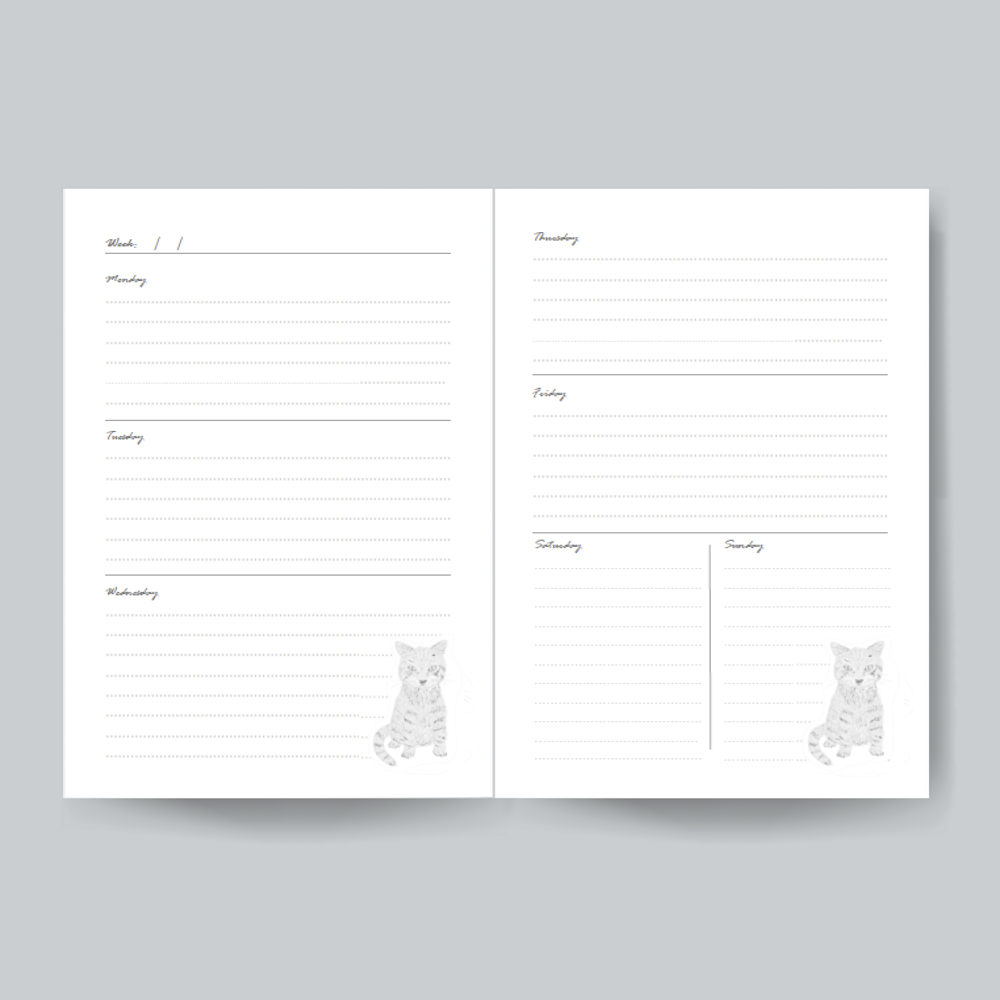 Each double page of the weekly planner is sectioned off by day to enable you to plan your week.