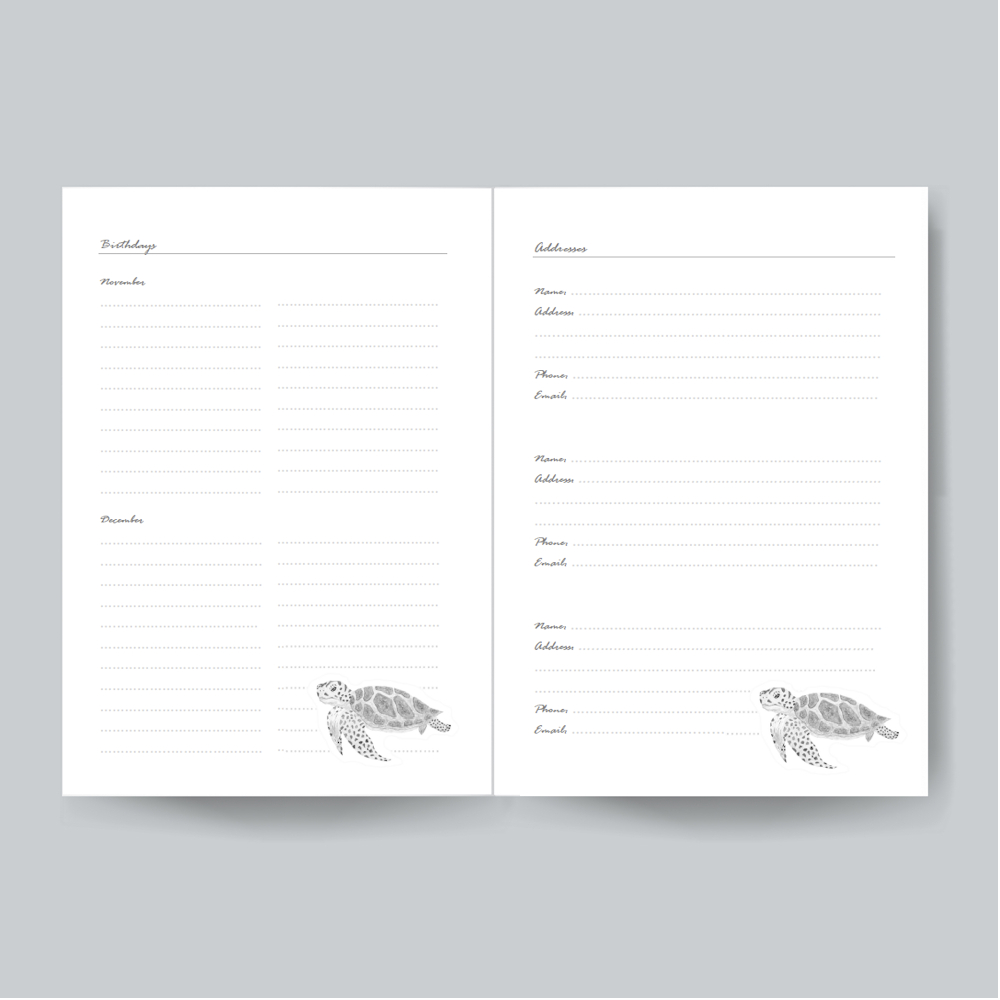 The rest of the book features pages for recording loved ones’ addresses, phone numbers and email addresses.