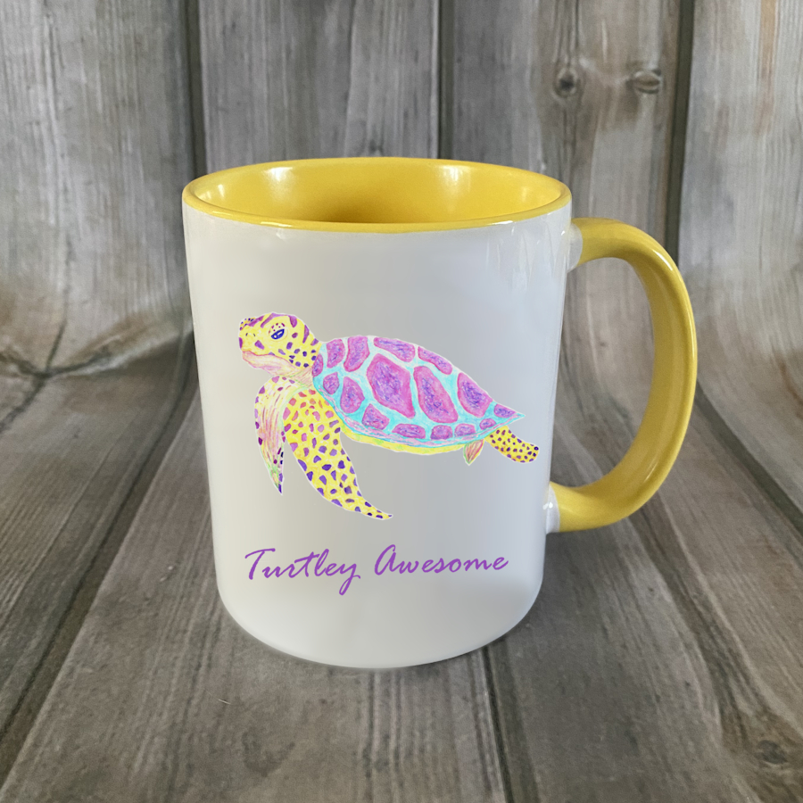 11oz (330ml) ceramic mug with artwork printed on both sides.