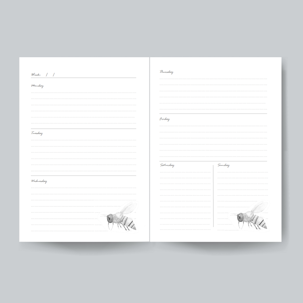 Each double page of the weekly planner is sectioned off by day to enable you to plan your week.