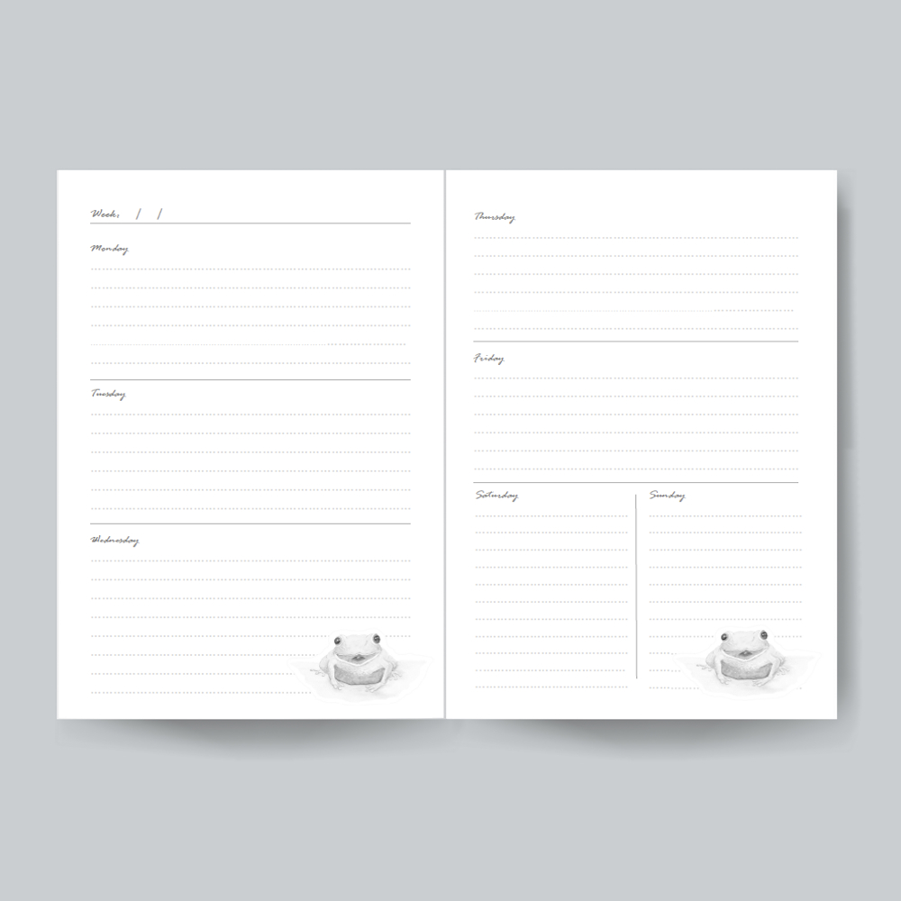 Each double page of the weekly planner is sectioned off by day to enable you to plan your week.