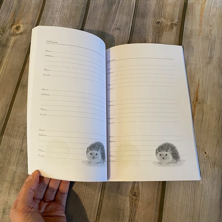 The rest of the book features pages for recording loved ones’ addresses, phone numbers and email addresses.