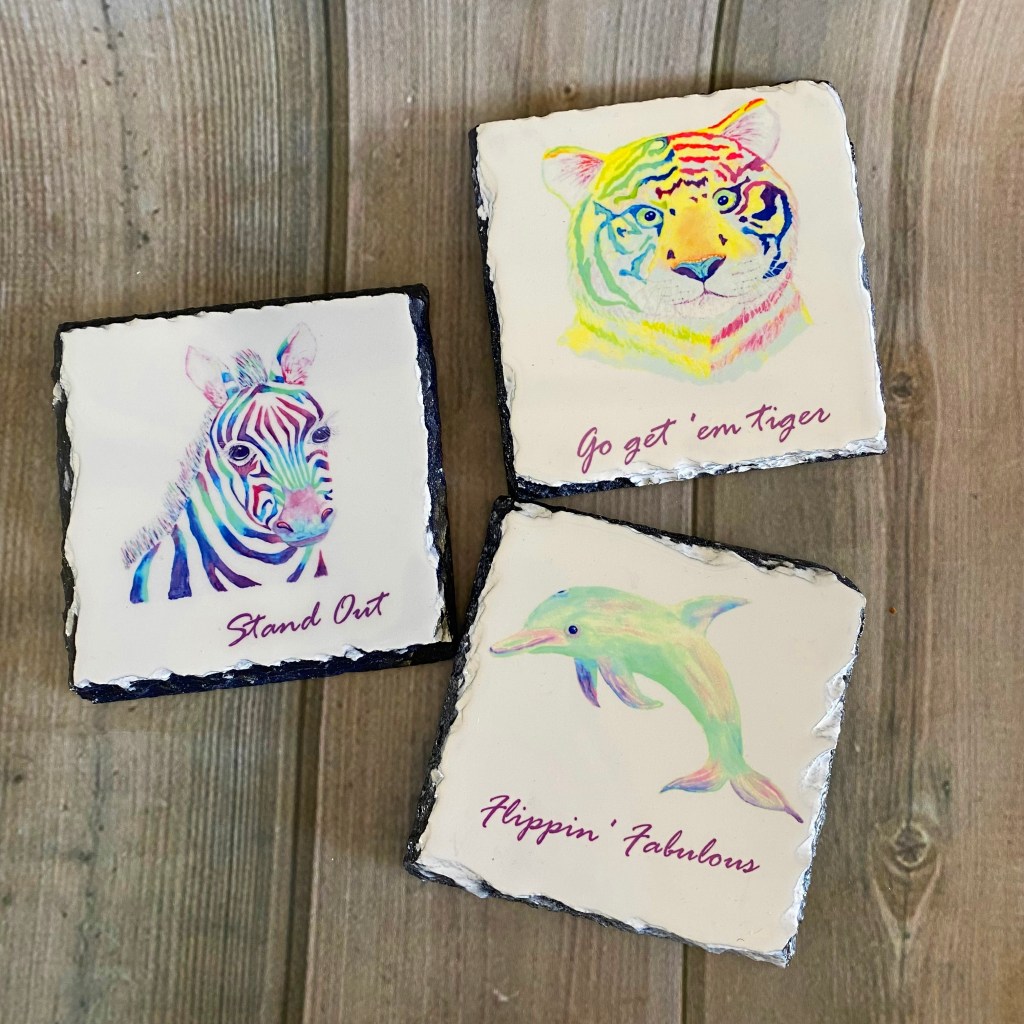 Printed onto 10x10cm high quality slate, bright coasters make a great gift for a special someone.