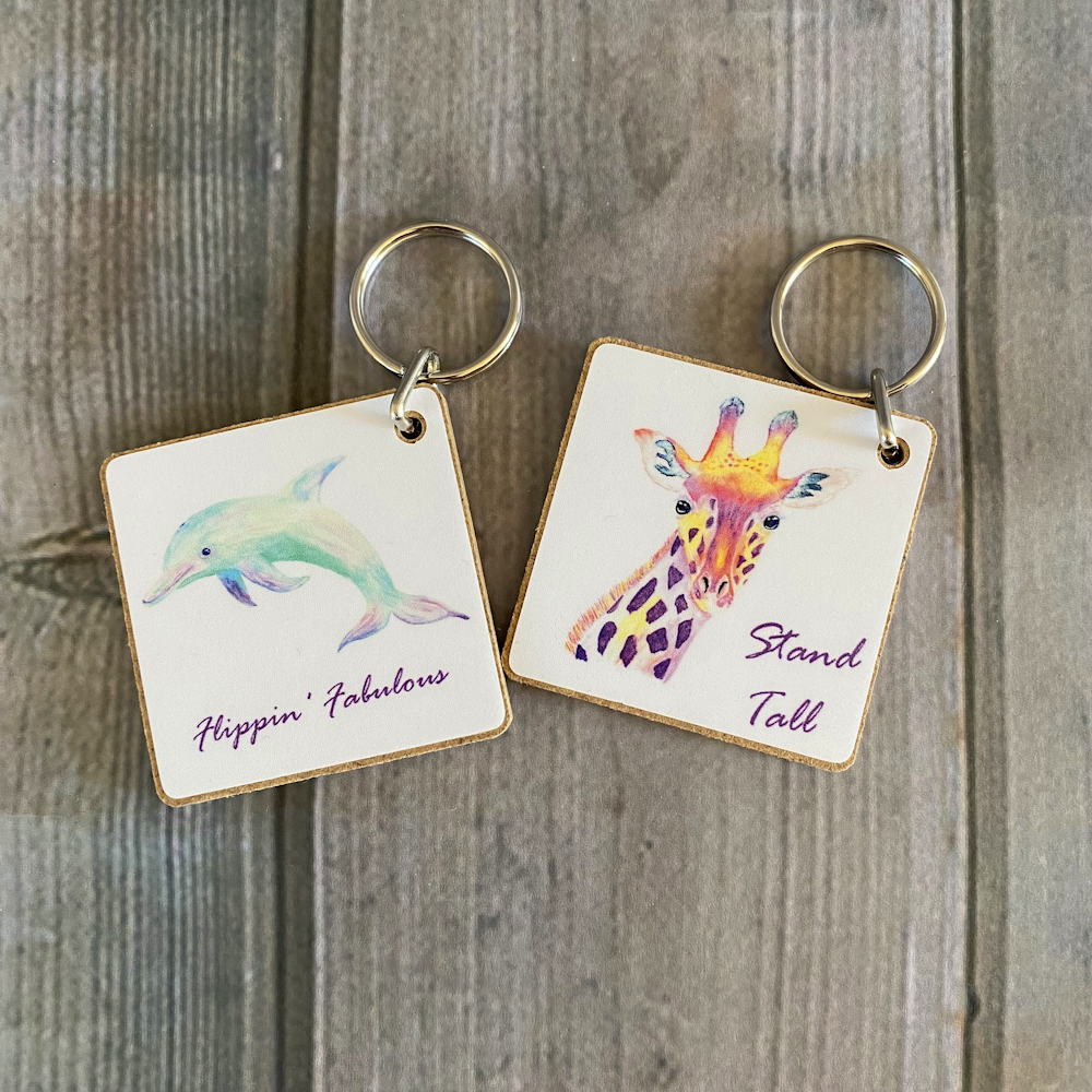 5 x 5cm square keyring featuring beautifully printed artwork on both sides.